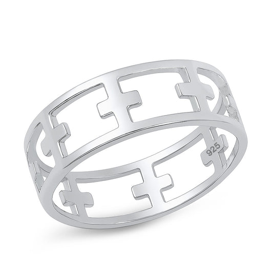 Silver Ring - Connecting Crosses