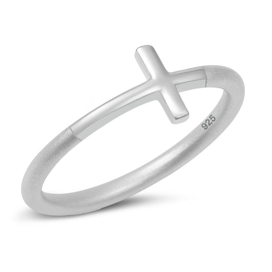 Silver Ring - Sideways Cross