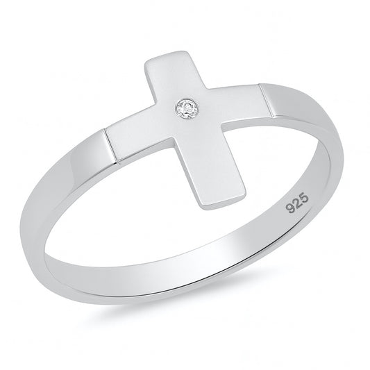 Silver CZ Ring - Plain Cross