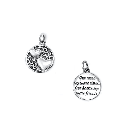 Silver Pendant W/ CZ - Breast Cancer Ribbon & Heart