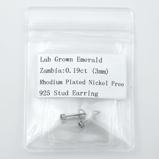 Lab Emerald Earrings - 3 mm