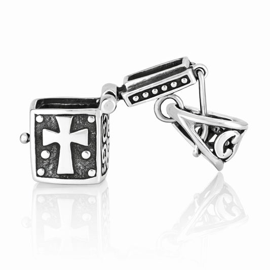 Silver Pendant - Cross & Fish Prayer Box