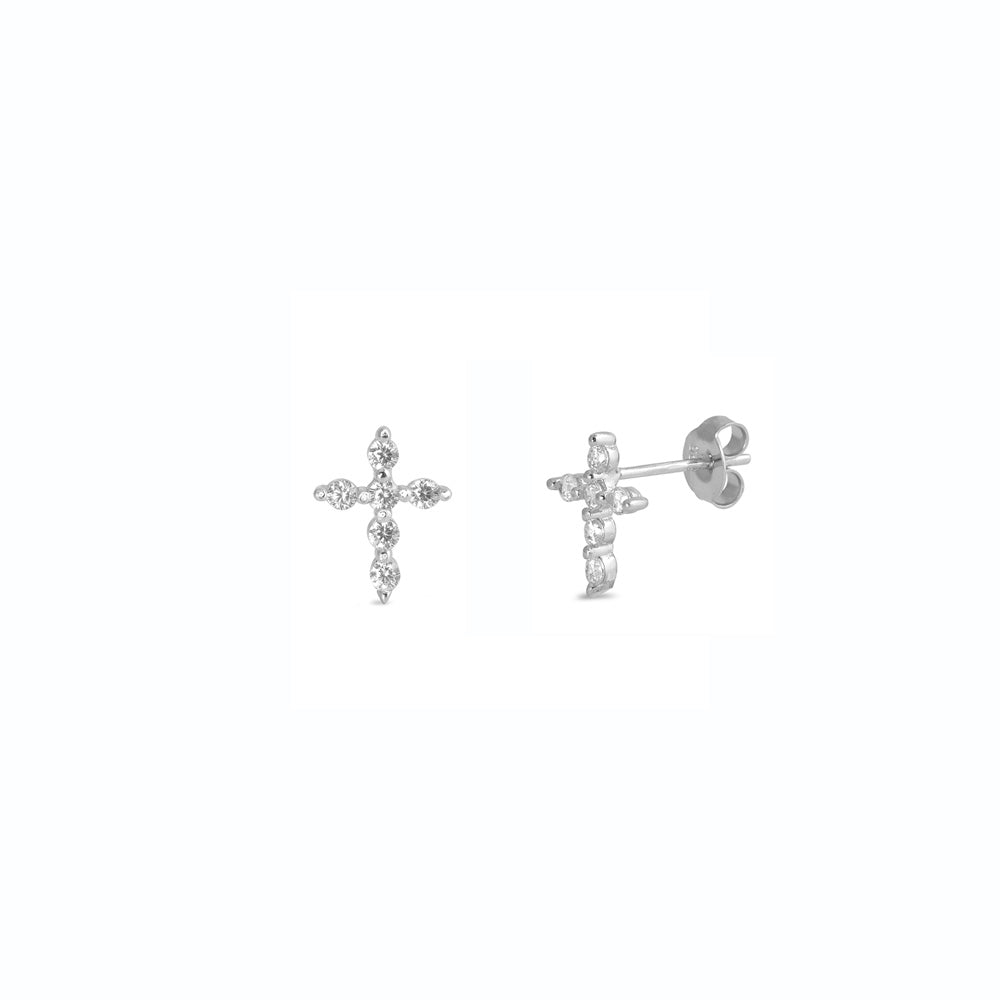 Silver CZ Earring - Cross