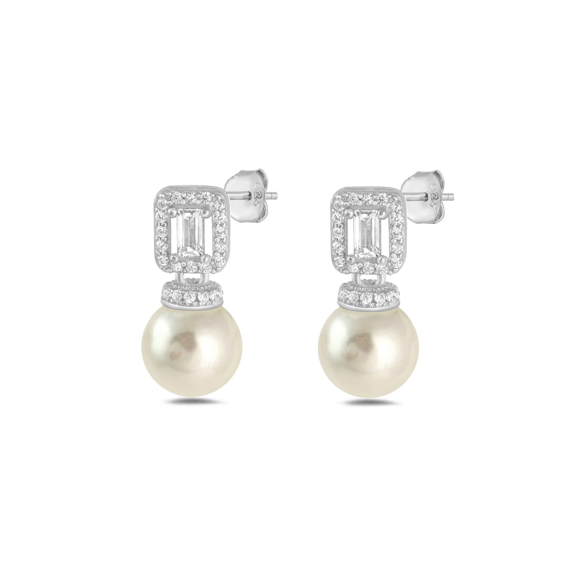 Silver CZ Earring - Pearl