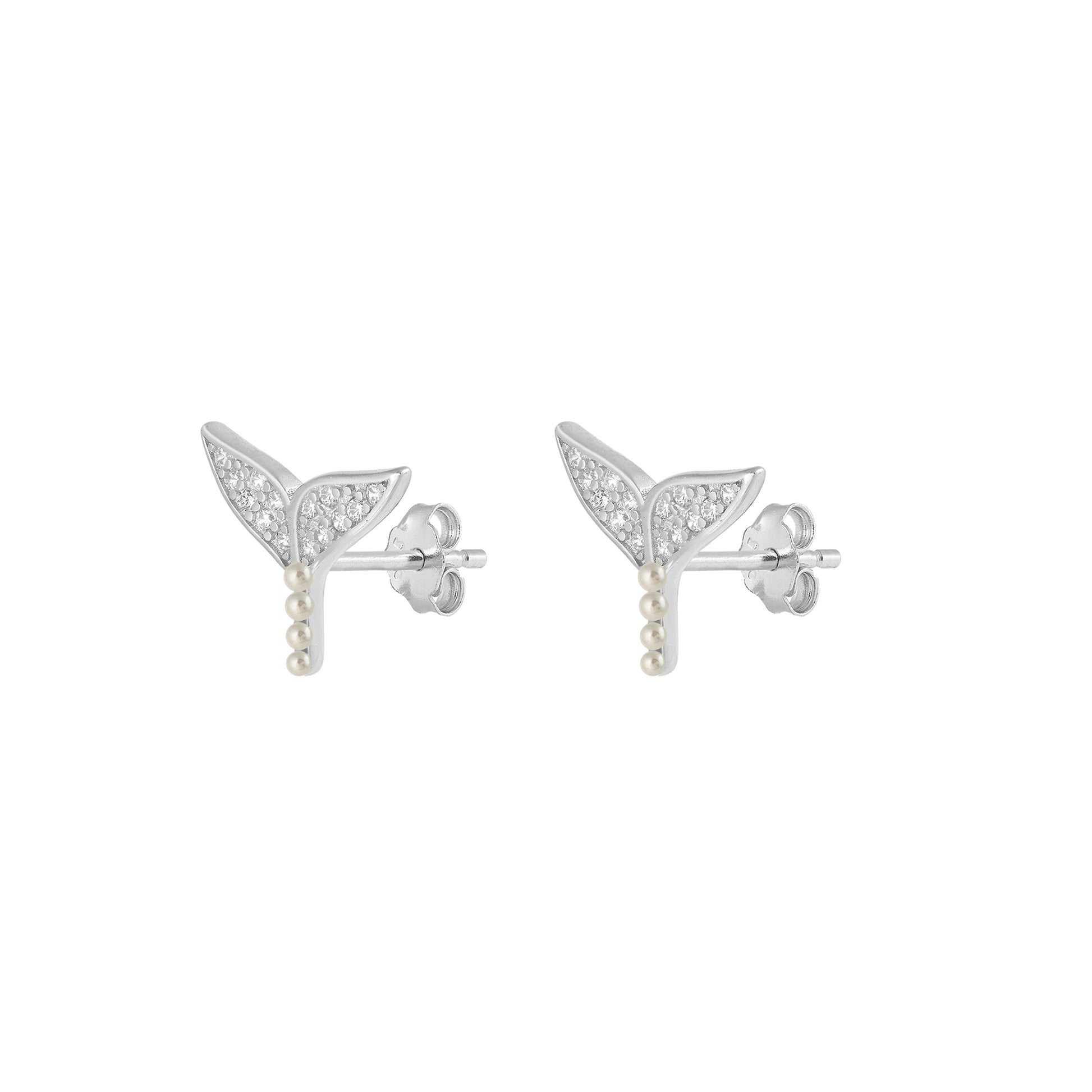 Silver CZ Earring - Whale Tail
