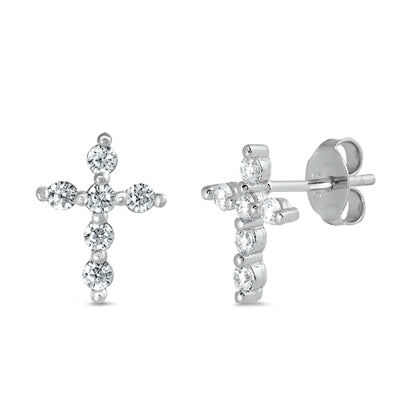 Silver CZ Earrings - Cross