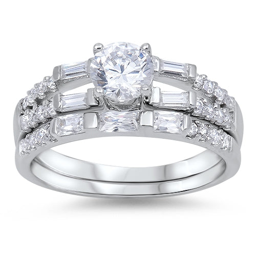 Product Code: RC104938 Center Stone: 6 mm Band Width of Two Rings: 2 mm Stone: Clear CZ Metal Material: Sterling Silver