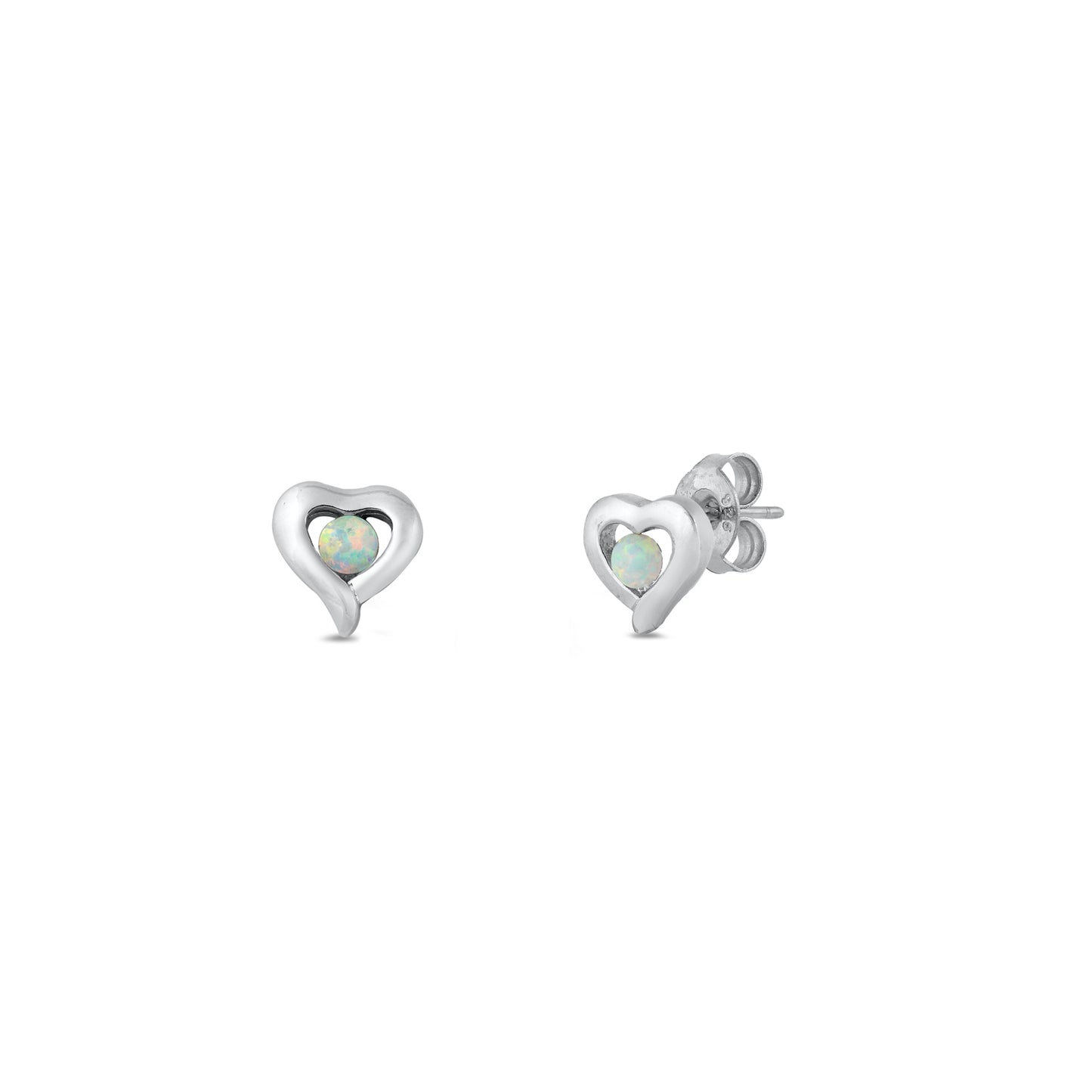 Silver Lab Opal Earrings - Heart