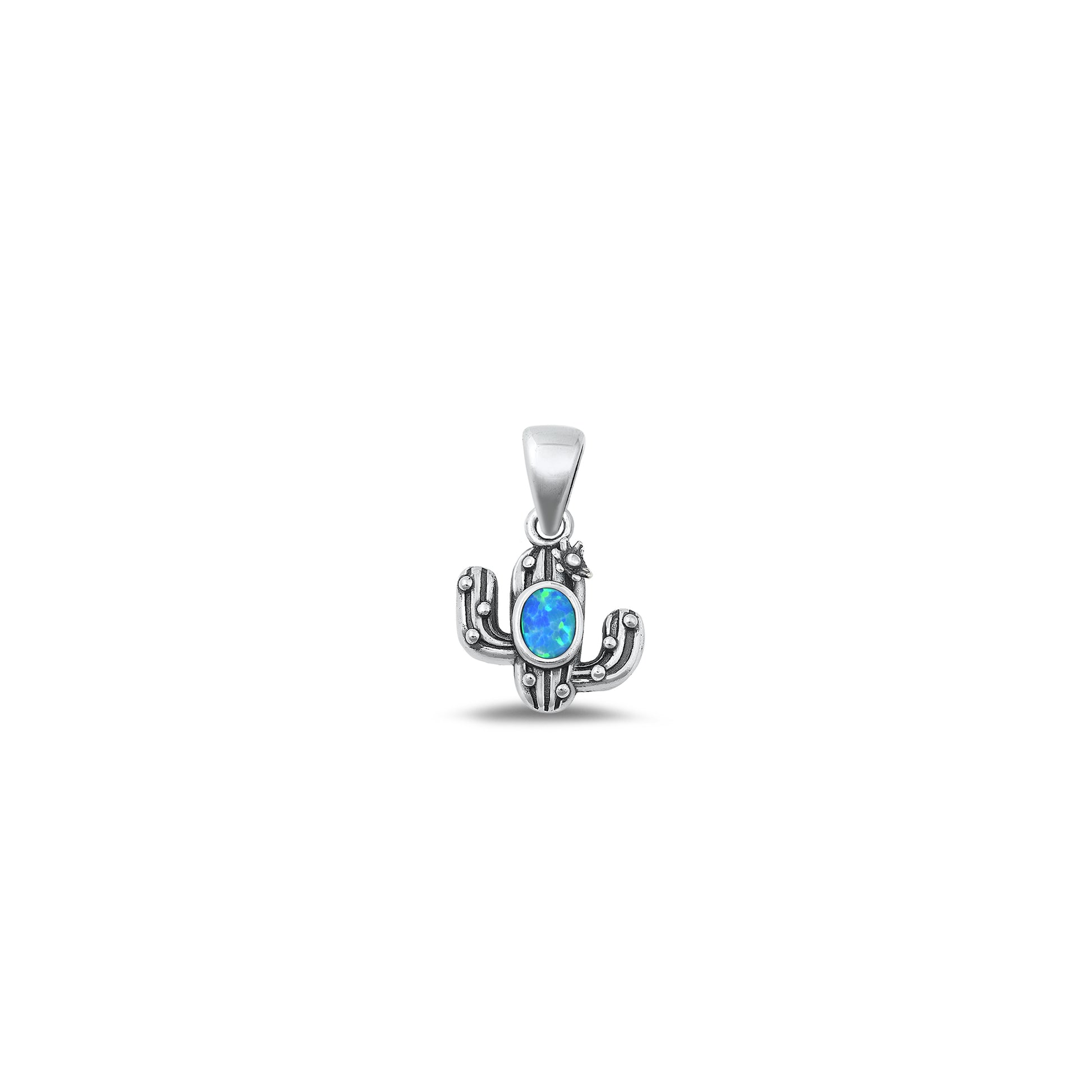 Silver Lab Opal Pendant - Cactus