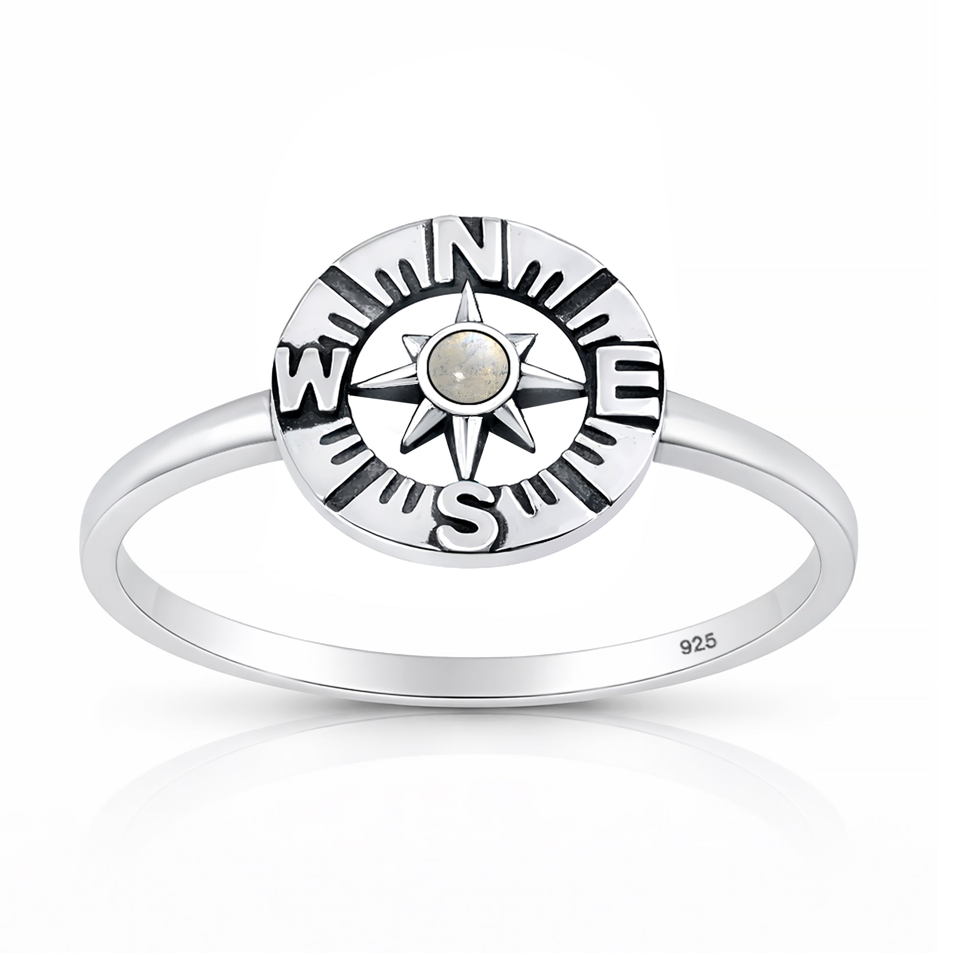 Silver Stone Ring - Compass